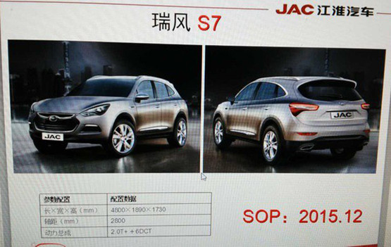 江淮瑞风S7更多消息曝光 下半年推出
